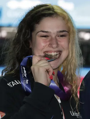 'E' un fenomeno, una donna in un corpo di bambina - dice di lei Martina Carraro, bronzo nei 100 rana e finita quinta nella gara sprint -. A quell'età ti sembra di vivere una favola, hai la leggerezza dell'inesperienza'. La 14enne tarantina è infatti la più giovane nuotatrice italiana medagliata ai mondiali della storia. Meglio di Novella Calligaris e di Federica Pellegrini.