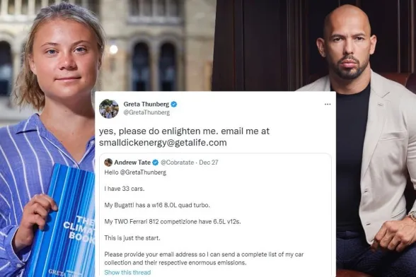 Sbruffone fino al paradosso, una 'dote' che gli è valsa l'ammirazione di generazioni cresciute a suon di insicurezze mascherate da cattiveria alle quali pretendeva di insegnare a diventare milionari senza fatica, mercoledì scorso ha pensato bene di rivolgere un tweet a Greta Thunberg sfoggiando le imponenti emissioni delle sue auto di lusso e chiedendole l'email per inviargliene l'elenco completo. 'Sì, illuminami - la pronta risposta della giovane ambientalista - scrivimi pure all'indirizzo smalldickenergy@getalife.com', un invito implicito a 'farsi una vita' e a riporre il suo fragile ego. Tate ha replicato con un video in cui fumava il sigaro e pronunciava insulti sessisti davanti a un cartone di pizza a domicilio con tanto di logo in bella vista, quello grazie al quale è stato individuato e arrestato. 'Questo è quello che succede quando non ricicli la scatola della tua pizza', l'ultimo affondo di Greta.