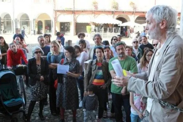 Martedì Rosso si è incatenato davanti al municipio in piazza del Popolo annunciando uno sciopero della fame «almeno fino al 3 giugno». Insieme a lui anche l’ex consigliere comunale verde Davide Fabbri e Graziano Castiglia, denunciato per stalking dal sindaco Lucchi.