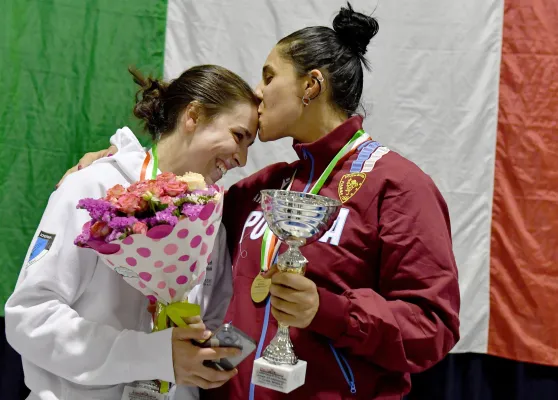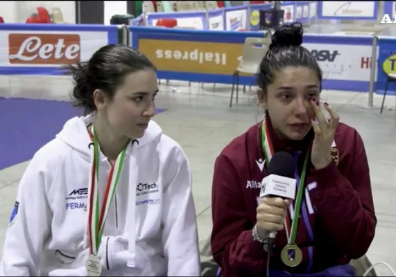 Protagoniste sono Gaia Traditi ed Emilia Rossatti, due ragazze giovanissime, due sportive, due probabili campionesse di scherma del futuro, ma già ampiamente campionesse della vita perché sono protagoniste di una storia che è una lezione morale. Gaia e Emilia stanno incrociando le loro spade, l’una contro l’altra, in un match decisivo per la medaglia d’oro. Si giocano la finale under 23 dei campionati italiani che si disputano a Vercelli, Gaia è la favorita e infatti è in testa.