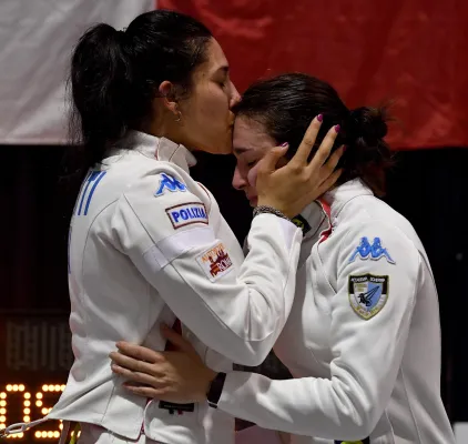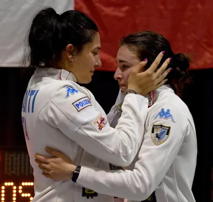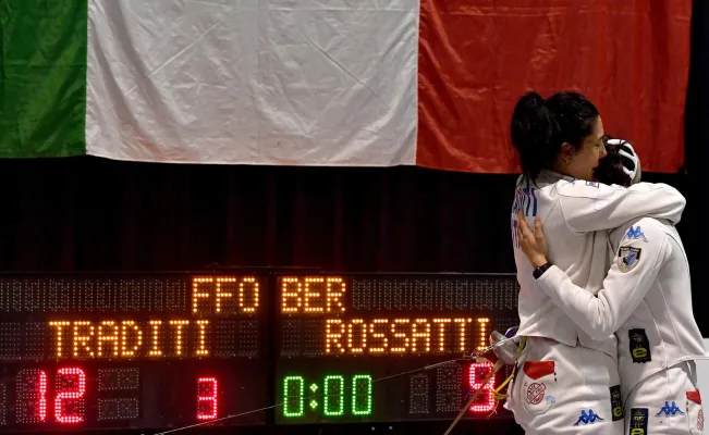 Il quarto attimo è quello dell’”alt, tempo scaduto”, quello dell’abbraccio in cui si sciolgono le lacrime dell’una e dell’altra, quello che sancisce la vittoria di Gaia Traditi per 12 a 9, lo stesso punteggio con il quale conduceva prima di infortunarsi. Ma è anche l’attimo che sancisce la vittoria di Emilia Rossatti, una vittoria della generosità sull’egoismo, dell’affetto sull’ambizione. Poi accanto all’amica spiega: "Non provare a vincere, dinanzi a un'avversaria, che è prima di tutto un'amica, infortunatasi, è la cosa più giusta che ho pensato di fare, e la rifarei altre mille molte".