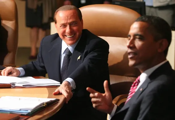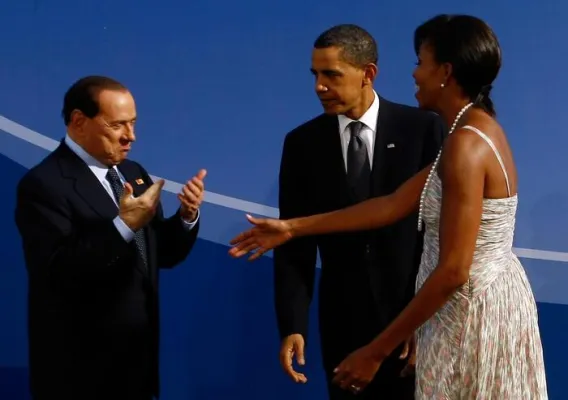 Fece il giro del mondo la sua foto insieme alla first lady, Michelle Obama al G20 di Pittsburgh. Era il 2009 e Berlusconi, dopo una vigorosa stretta di mano con Obama, fece un ampio gesto di ammirazione nei confronti della moglie.