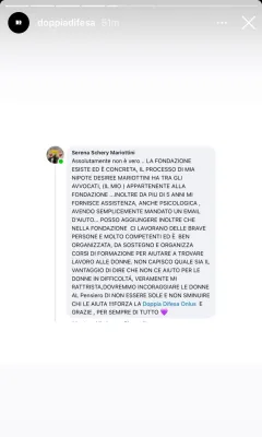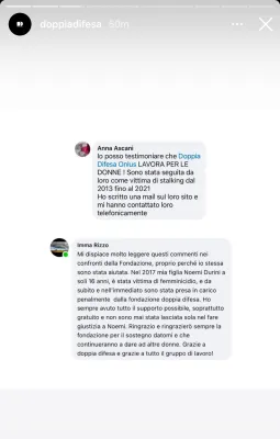 Moltissimi i commenti a difesa di Hunzinker e Bongiorno da parte di donne che si sono rivolte alla onlus per chiedere aiuto e sostegno, avendo subito violenza di genere. La stessa associazione ha ringraziato per i messaggi queste donne che hanno condiviso le loro storie e le modalità con cui sono state aiutate. Lucarelli dal canto suo risponde che se dovesse pubblicare tutti i messaggi che le sono arrivati per affermare il contrario non le basterebbero le storie Instagram.
