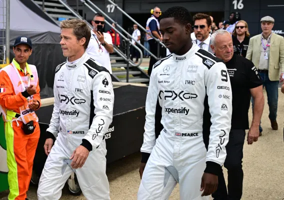 Pitt è stato avvistato sul circuito di Silverstone domenica, prima del Gran Premio di Gran Bretagna. L'attore hollywoodiano girerà lì le scene del suo prossimo film sulla Formula 1. Insieme alla co-star Damson Idris indossavano tute da corsa bianche e nere per rappresentare il team fittizio APXGP mentre si mescolavano tra i veri piloti sulla griglia del circuito nel Northamptonshire.