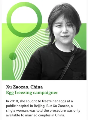 In Cina, paese non democratico, una donna coraggiosa, Xu Zaozao, sta portando avanti una battaglia legale per riuscire ad affermare quello che ritiene un suo diritto: la crioconservazione degli ovuli. Un’opportunità per la donna, che in Cina è concessa per legge solo alle coppie sposate con problemi di fertilità.