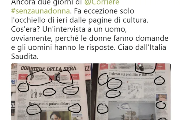 Era da tempo che ci pensavo buttando uno sguardo alle prime pagine dei maggiori quotidiani nazionali e trovandovi, ogni giorno, conferma alle parole polemiche della scrittrice Michela Murgia. “Su ispirazione di una serie di post acuti di Ritanna Armeni - scrive su Facebook l’autrice - da diversi giorni ho cominciato a studiare con cura le prime pagine dei due principali quotidiani italiani, La Repubblica e Il Corriere della Sera”. Da questa analisi, “salta immediatamente all’occhio il dato macroscopico dell’onnipresenza maschile: i pezzi sono quasi tutti scritti da uomini, con percentuali del 100% in quelli di opinionismo politico”.
