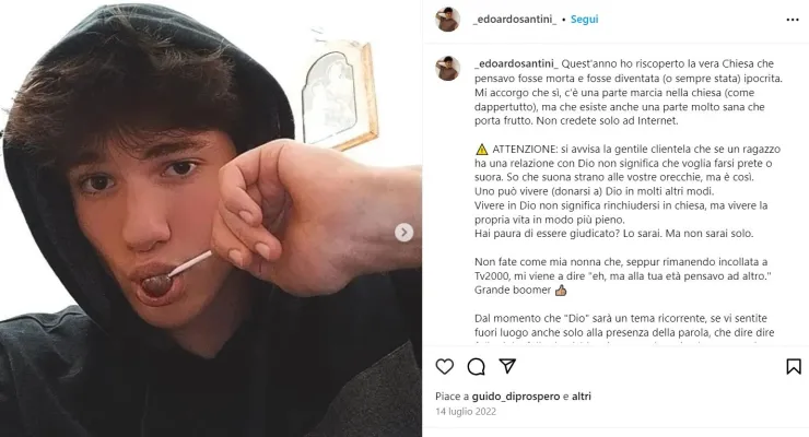 Nel 2019 era stato eletto il “Più bello d’Italia”, ma ora ha deciso di cambiare vita, dedicandosi interamente alla vita spirituale e dunque al prossimo, con tanto di abito talare. Edoardo Santini, modello, ballerino e nuotatore di appena 21 anni, ha deciso di voler diventare sacerdote. E’ già entrato nel cosiddetto propedeutico, l’anno che precede la vita in seminario, e sembra felice del percorso intrapreso: “Non so se diventerò prete ma non mi pentirò di questo viaggio”.