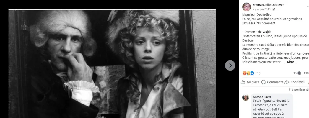 Il 5 giugno 2019, in un post pubblicato sul suo account Facebook, proprio Emmanuelle Debever commentò l'archiviazione di un'indagine contro l'attore per stupro e violenza sessuale: "Signor Depardieu. Oggi assolto dall'accusa di stupro e violenza sessuale. No comment".