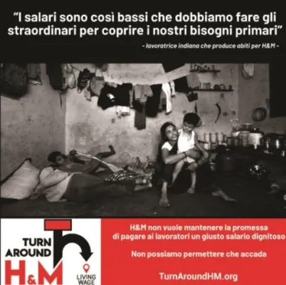 All’interno della campagna “Turn Around, H&M!' è stata lanciata una petizione per chiedere salari dignitosi e condizioni di lavoro giuste in tutta la catena di fornituradi H&M. Sono già state raccolte oltre 100mila firme.