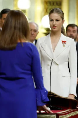 Arrivata su una Rolls con la sorella l’Infanta Sofia. Preceduta dal re e dalla regina Letizia scortati dalla guardia a cavallo. Accolta alle Cortes da scrosci di lunghi applausi. "Un giuramento che è espressione pubblica del rispetto alla nostra Costituzione da parte della Corona. Un giuramento che cade nel 45mo anno dall’approvazione della Costituzione da parte delle Cortes Generales", ha detto la presidentedel Congreso, Francina Atrmengol, ricordando i tempi moderni e convulsi.