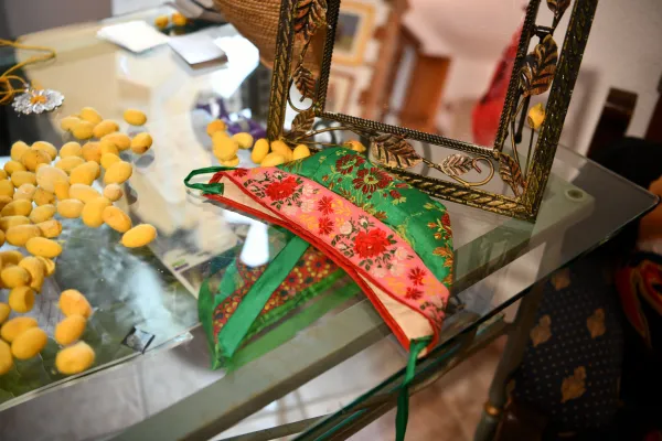 “Nella nostra famiglia, da parte di mamma, siamo bachicoltrici e tessitrici da circa 200 anni -racconta Maria Corda-. La passione per la seta e per l’arte ad essa legata nasce in me da bambina, perché ho sempre vissuto l’allevamento dei bachi, la lavorazione della seta, la tessitura, proprio grazie a mia madre, che le faceva in casa”. Le donne dalla famiglia seguivano tutto il processo, erano le Mastras de seda, note per l’abilità nell’allevare e selezionare i bachi, sino ad ottenere una razza pregiata, la “Orgosolo”, per l’appunto, in grado di creare dei filamenti di colore giallo, oggi reso ancor più intenso con lo zafferano, trattati e poi tessuti a mano su telai appositi. Un lavoro certosino, alla base della produzione del raffinato “su lionzu”, il copricapo del costume tipico del paese, simbolo di un mestiere antico: “La tessitura di Orgosolo è un’arte vera e propria, nella quale vedo tutte quelle donne che per tantissimi anni hanno lavorato per poter confezionare su lionzu e l’abito tradizionale di Orgosolo, senz’altro uno dei più belli del centro Sardegna. Anche se erano povere, in quel vestito volevano però quasi sentirsi regine. Su lionzu - ecco l’aspetto importante da sottolineare - è l’unico capo di un vestito tradizionale sardo prodotto interamente sul posto, perché qui si è sempre fatta tutta la filiera, dall’allevamento alla tessitura. Un processo che rappresenta un unicum a livello nazionale se non europeo. Per questo, secondo me, è un patrimonio che va preservato”.