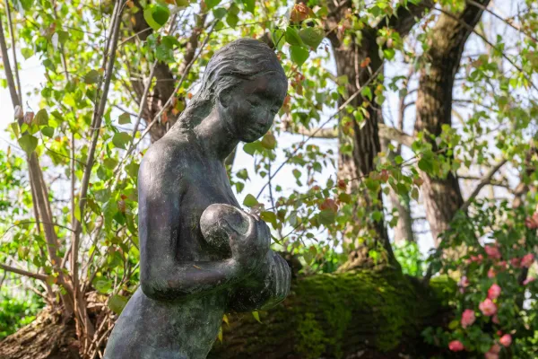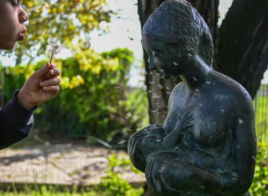 Scultrice e ceramisa, Vera Omodeo è scomparsa nel maggio 2023. Legatissima alla sua Milano, è nata e cresciuta all’ombra del Duomo. La sua opera più famosa è il portale di Santa Maria della Vittoria, in via De Amicis, a due passi dalle Colonne di San Lorenzo. La donna che allatta come tante altre, sono tutte opere che Vera ha donato ad amici e conoscenti e a enti benefici perché venissero vendute all’asta. O come in questo ultimo caso, alla sua città. La figura femminile e materna, è molto presente nei lavori dell'artista. Studiò all’Accademia di Brera, e poco dopo si ammalò di una grave nefrite. Si salvò ma le dissero che non avrebbe potuto avere figli. Previsione del tutto errata, visto che Vera ha avuto sei figli.