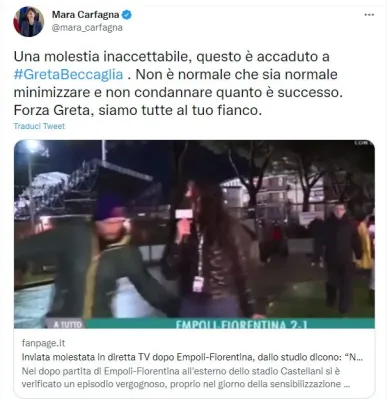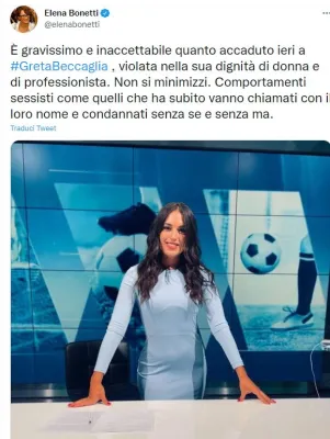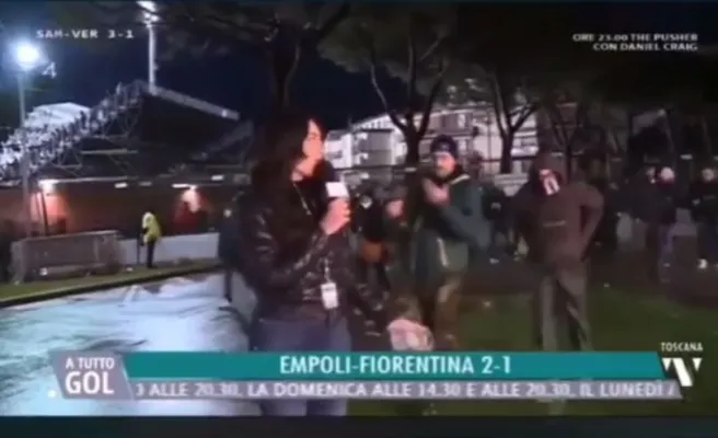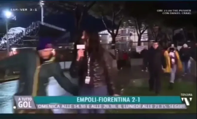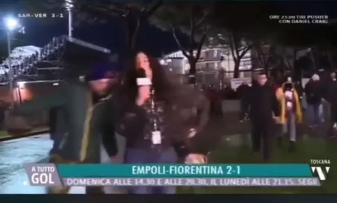 Il tifoso Andrea Serrani aveva toccato il fondoschiena di Greta Beccaglia (leggi qui), anche in questo caso in diretta tv, fuori dallo stadio dove la giornalista stava appunto lavorando al termine del match Empoli-Fiorentina, all'uscita dallo stadio Castellani di Empoli. A dicembre 2022 è stato condannato a un anno e sei mesi per violenza sessuale.