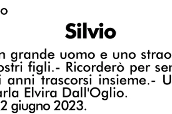 "Carissimo Silvio, sei stato un grande uomo e uno straordinario padre per i nostri figli. Ricorderò per sempre la bellezza degli anni trascorsi insieme": con questo necrologio sul Corriere della Sera Carla Elvira dall'Oglio, prima moglie di Silvio Berlusconi, ricorda l'ex presidente del Consiglio. "Un abbraccio infinito" conclude la madre di Marina e Pier Silvio che ha sempre mantenuto un estremo riserbo e non ha mai rilasciato dichiarazioni sull'ex marito.