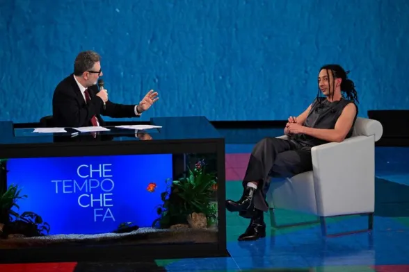 «Stop a tutte le guerre, stop ai respingimenti, stop alle ingiustizie”. E stop pure alla parola “genocidio”. Ci si aspettava, dopo una settimana di polemiche incandescenti, che Ghali seduto al tavolo di “Che tempo che fa” spiegasse perché avesse esclamato “Stop al genocidio” sul palco di Sanremo. Ma niente, si è limitato a parlare genericamente di guerra, di pace, di persone che stanno male in una stanza. E pure Fabio Fazio, al solito restio a fare domande scottanti o che mettano in imbarazzo il suo ospite, si è ben guardato dal pronunciare quella parola. E così l’attesa prima uscita pubblica del rapper dopo che la sua frase ha provocato la reazione dell’ambasciatore israeliano in Italia, a cui è seguita la reazione dell’ad della Rai Roberto Sergio con tutta la marea di insulti piovuti su Mara Venier che ha dovuto leggere un comunicato dell’ad medesimo al termine di “Domenica In”, si è risolto in un banale temino da scuola elementare sulla pace ad opera del “maestrino” Fabio Fazio.