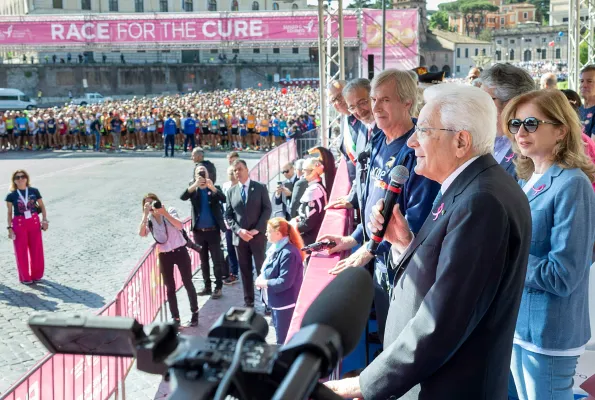 Una marea suggestiva e tutta rosa ha invaso la capitale. Sono le donne che corrono contro il tumore al seno e per la prevenzione. Il Presidente della Repubblica Sergio Mattarella era presente in questa 25esima edizione della Race for the Cure di Roma. A dare il via è stata la figlia del presidente, laura Mattarella e la gara ha battuto un nuovo record con 150.000 presenze, riconfermandosi la più grande manifestazione al mondo per la lotta ai tumori del seno. L'evento, organizzato da Komen Italia per tenere alta l'attenzione nell'azione di contrasto ai tumori del seno e sensibilizzare il pubblico sulla importanza della prevenzione, ha colorato di rosa le strade del centro della Capitale. Alla tradizionale passeggiata di 2 km e corsa di 5 Km aperta a tutti, è stata aggiunta per la prima volta una gara di 10 Km riservata agli atleti competitivi.