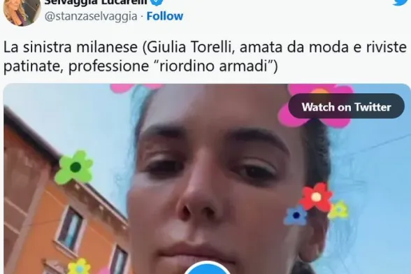 I concetti espressi dalla creator digitale rimbalzano su Twitter proiettando Torelli nelle tendenze, grazie anche all'attenzione dedicata al monologo da parte di Selvaggia Lucarelli: 'La sinistra milanese (Giulia Torelli, amata da moda e riviste patinate, professione “riordino armadi”), scrive la giornalista rilanciando il video.