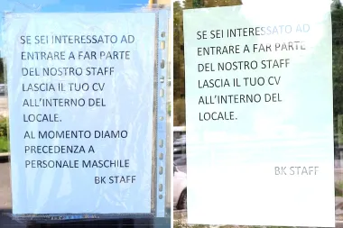 Immagine Polemica su un annuncio di lavoro: “Precedenza al personale maschile'. La giustificazione della manager di Redazione 4/05/2022