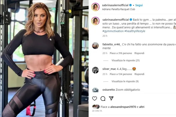 Immagine Sempre in forma Sabrina Salerno in palestra con un leggings nero e un mini top che lascia l'addome in vista: scoppia la polemica 5/09/2023