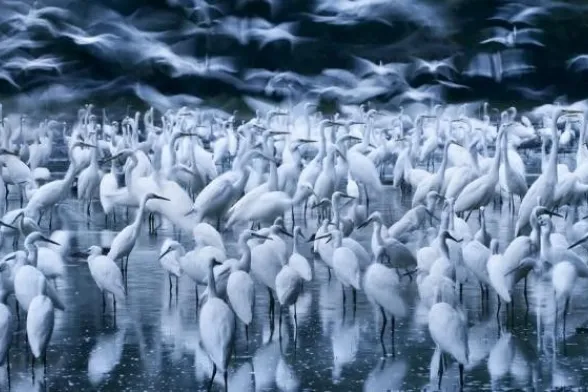 Giunto alla seconda edizione, il contest ha l’obiettivo di illustrare la bellezza della biodiversità per proteggerla e salvaguardarla anche attraverso il potere delle immagini, un po’ come a dire “guardate che meraviglia, non distruggiamola”. Tra le 6mila foto arrivate da 69 Paesi del mondo il primo premio è andato a Zsolt Kudich, che ha immortalato oltre mille aironi bianchi in un lago del parco nazionale del Danubio-Drava, il suo scatto ha conquistato la giuria perché “è come un quadro deprimente, suggestivo, elegante, affascinate, è il tipo di immagine che non ci si stanca mai di guardare”.