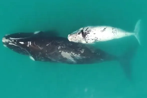 Pochi giorni fa, in Sudafrica, è stato avvistato un raro cucciolo di balena bianca a chiazze nere. Le immagini del fortunato e inaspettato incontro sono state condivise su Facebook - nella pagina Mammifères marins de la Côte-Nord - dall’equipaggio della Dyer Island Cruise, un’imbarcazione per il whale watching. Il cetaceo, un esemplare giovanissimo di balena franca australe (Eubalaena australis), era in compagnia della madre nei pressi di Dyer Island. Stando a quanto riportato sulle pagine della Dyer Island Cruise soltanto “il 4 per cento dei nuovi nati presenta questa spettacolare colorazione”.