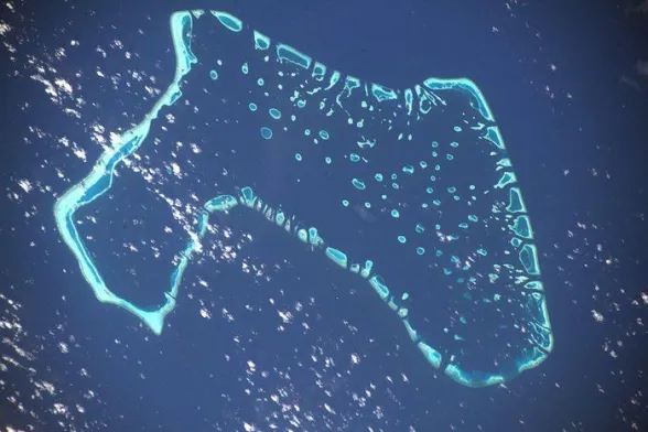 Blu intenso, azzurro acceso e bianco: con i suoi colori così vividi e luminescenti potrebbe sembrare un quadro e invece è uno degli atolli delle Maldive a rischio di sparire se non si agirà tempestivamente per invertire la tendenza del riscaldamento globale. A lanciare l'appello, con la bellissima foto scattata dalla Stazione Spaziale Internazionale, è Luca Parmitano.