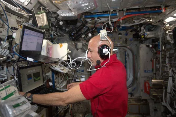 Sempre su Twitter l'astronauta ha pubblicato una foto che lo mostra alle prese con un esperimento di diagnosi acustica, condotto per l'Agenzia Spaziale Italiana (Asi) e l'università Sapienza di Roma.