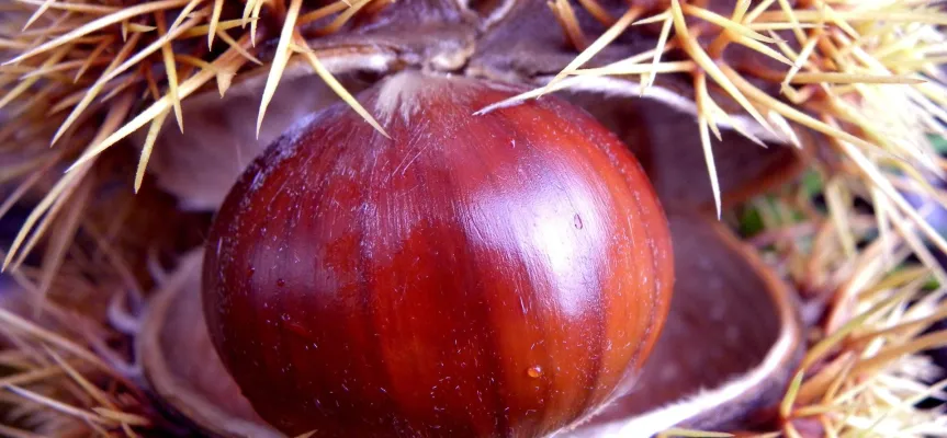L’autunno è tradizionalmente profumo di caldarroste. Il piccolo frutto, la castagna, un tempo pane dei poveri, è da sempre molto amato grazie alla quantità generosa di carboidrati, zuccheri facilmente assimilabili, fibre, importanti per la funzionalità intestinale, vitamine (A, B1, B2, B3, B5, B6, B9, C, D), sali minerali, in particolare, potassio, sodio, magnesio, calcio, cloro, ferro, rame, fosforo e zolfo.