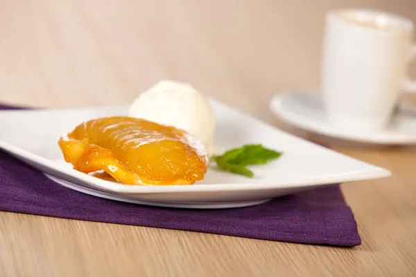 Con i marrons glacés l’azienda svizzera propone, invece, una tarte Tatin alle pere. Ingredienti per 4 persone: 1 cucchiaio di marrons glacés, 50 g di zucchero, 4 stampi per tartellette di circa 10 cm di diametro, 2 pere, mezza confezione di pasta sfoglia rettangolare, zucchero q.b. “Caramellare lo zucchero in una padella e versarlo negli stampi” spiega la Sandro Vanini. “Spezzettare i marrons glacés e distribuirli negli stampi. Sbucciare le pere, eliminare il torsolo, dividerle a metà e tagliarle a fettine sottili. Disporre in ciascuno stampo mezza pera tagliata con la superficie verso il basso, inclinando leggermente le fette. Ricoprire gli stampi con la pasta sfoglia e tagliare la pasta in eccesso. Cuocere in forno a 180°C per 20 minuti circa. Capovolgere le tarte Tatin e spolverizzarle con lo zucchero a velo. Disporre le tarte Tatin su un piatto con una pallina di gelato alla vaniglia”.
