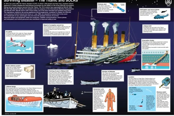 La convenzione, che all’epoca non entrò in vigore a causa dello scoppio del primo conflitto mondiale, conteneva, infatti, disposizioni in materia di soccorso fra navi, monitoraggio dei ghiacci, comunicazioni radiotelegrafiche, turni di vigilanza, abbandono della nave, scialuppe di salvataggio, compartimenti stagni, sistemi antincendio, costituendo il primo passo verso la creazione di regole comuni sulla sicurezza in mare.