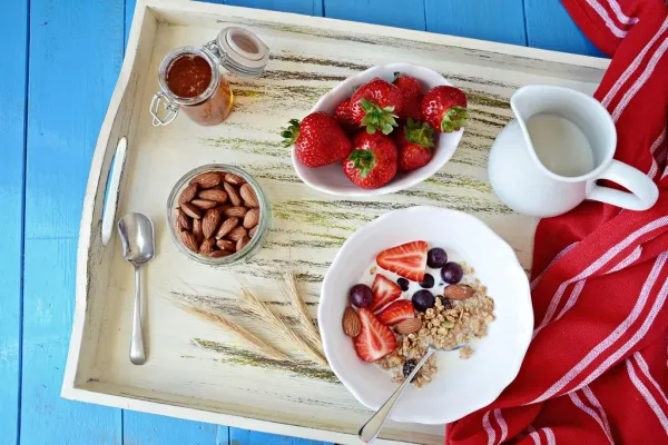 La conduttrice televisiva, attrice ed ex modella italiana Alessia Marcuzzi ha presentato la sua ideale colazione: a letto con tè, caffè, biscotti e fetta di dolce. Un’idea da copiare, per il professor Piretta, per ritrovare un momento di intimità e anche grazie ai carboidrati, fondamentali in particolare al mattino. Promossi, in quest’ottica, anche pane, fette biscottate, prodotti da forno e cereali da prima colazione che, continua il professor Piretta, oltre ad apportare zuccheri a lento rilascio che danno energia per tutta la mattina” hanno “un effetto gratificante, aspetto da non trascurare per una colazione a due”. Per arricchire il menu, consiglia ancora il professor Piretta, aggiungere del latte, fonte di proteine e sali minerali, e frutti di bosco, noti per i loro benefici sulla microcircolazione grazie al loro potere vasodilatatorio.