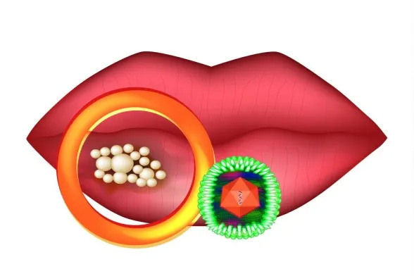 L’herpes labiale è causato dal virus Herpes simplex (HSV). Di questo virus esistono due sottotipi: il sottotipo 1 (HSV-1) e il sottotipo 2 (HSV-2). Il primo provoca infezioni nella regione della bocca e del viso, mentre il secondo, colpendo prevalentemente l’area genitale, rappresenta, spiega EpiCentro, “la più diffusa patologia ulcerativa a trasmissione sessuale nel mondo”, anche se negli ultimi anni sempre più casi d’infezione genitale sono stati ricondotti al sottotipo HSV-1. Trasmissibile è anche l’herpes labiale, anche con un semplice bacio. L’infezione è caratterizzata da vescicole rotondeggianti, piene di liquido chiaro che tendono a riunirsi a grappoli. Queste vescicole sono procedute da prurito e arrossamento e, spesso, da una sensazione dolorosa. Dopo la rottura, producono erosioni che, essiccandosi, si ricoprono di croste bruno-giallastre, che tendono in genere a scomparire in due settimane.