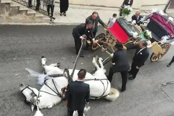 Si uccidono proprio cosi i cavalli. Non solo macellandoli per la carne ma anche costringendoli a tirare carrozzelle di ogni genere. L'ultimo, salvatosi pur stramazzando al suolo per la fatica delle salite e l'alta temperatura, è stato in provincia di Palermo, per un matrimonio, qualche giorno fa. Gli sposi hanno proseguito come se nulla fosse accaduto.
