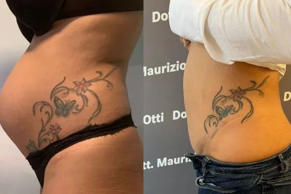 Infine, nei casi in cui fosse necessario correggere anche un eccesso di cute o adipe, si può eseguire contemporaneamente un intervento chirurgico di addominoplastica, permettendo così un completo rimodellamento dell’addome della paziente.