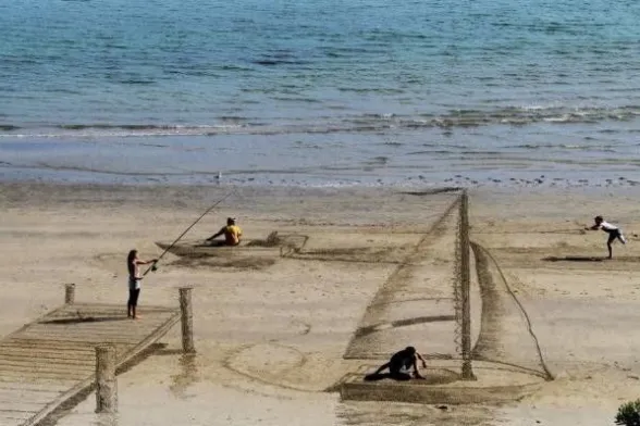 La spiaggia come tela, un bastone e dei rastrelli come pennelli e l’alta marea per cancellare naturalmente ogni traccia e restituire una superficie immacolata su cui iniziare di nuovo a dar forma all’arte.