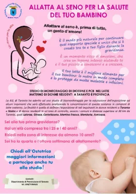 Con apposita locandina la Asl di Taranto quindi annunciava uno studio di monitoraggio di diossine e PCB nel latte materno di donne residenti a Taranto, a Statte e nei comuni a più di 30 km da Taranto come Laterza, Ginosa, Castellaneta, Martina Franca, Manduria e Avetrana, invitando le donne alla prima gravidanza, quelle fra i 25 e i 40 anni, quelle residenti nelle zone di interesse da almeno 10 anni, quelle, infine, tra la quarta e l’ottava settimana di allattamento, a richiedere maggiori informazioni all’ostetrica e a partecipare allo studio contattando il Dipartimento di Prevenzione dell’Asl tarantina.