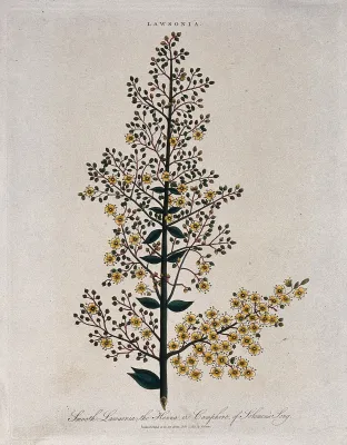 Una polvere verdastra ricavata dalle foglie essiccate della Lawsonia inermis L., arbusto delle Lythraceae dai piccoli fiori bianchi diffuso dall’Africa all’Asia, passando per il Medio Oriente e venerato sin dall’antichità come fonte di un colorante per tessuti, corpo, capelli e unghie: gli arabi la chiamano, così come l’arbusto e con varianti, al-ḥinnā, in Occidente conosciuta come henné, alla francese. Una polvere usata in ambito religioso e sociale, come cosmetico o nel trattamento della dermatite seborroica e delle infezioni fungine.