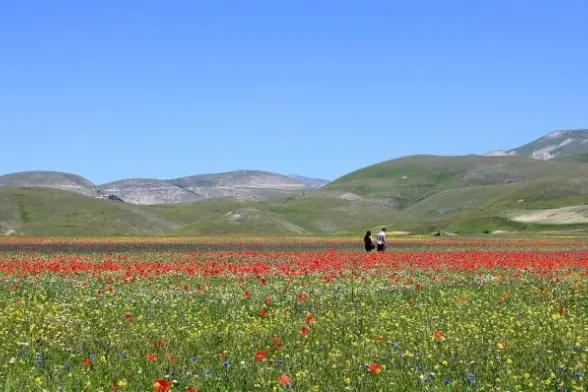 Si chiama 'Fioritura' la meraviglia che si ripete ogni anno, quando tra la fine di maggio e la metà di luglio, nell'altopiano di Castelluccio di Norcia lo sbocciare dei fiori di campo dà vita a un mosaico di colori suggestivi.