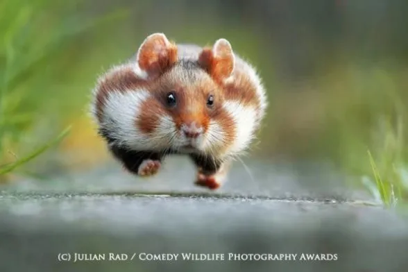 Sul gradino più alto del podio è salito l'austriaco Julian Rad, autore della fotografia al criceto, piuttosto in carne, intento a correre; la seconda posizione l'ha guadagnata Liam Richardson con lo scatto al cervo nelle cui corna è rimasta incastrata un po' di vegetazione; il terzo posto è di Oliver Dreike che ha fotografato un gorilla impegnato a pulirsi il naso. A seguire dei gufi dall'aria un po' stralunata, una foca che sembra ridere di gusto, un ippopotamo che corre con degli uccelli sul dorso, uno scoiattolo molto concentrato nel salto di alcuni rami, un leopardo che sembra fare una capriola e così via.