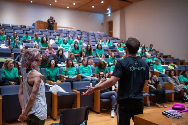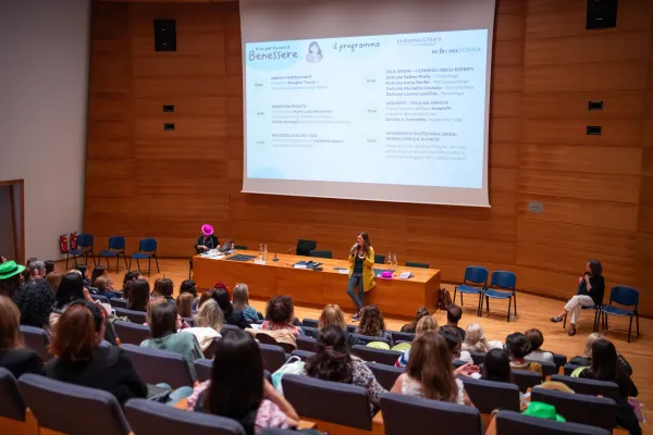 “Sono qui perché i temi che riguardano il benessere e la salute mi interessano molto. Credo che sia fondamentale cercare di rimanere sane e affrontare con consapevolezza tutti i piccoli o grandi fastidi che l’evolversi della vita comporta”, dice Maria, insegnante, in coda alla reception del Tiscali Campus per ricevere la sua bag con tanto di allegro cappellino, maglietta, beauty, burro cacao e occhiali a cuore e a stella per guardare il mondo con un sorriso. “Io invece sono qui perché ogni tanto sento il bisogno di concedermi una coccola. Dopo una settimana di lavoro, correndo da una parte all’altra, ho la necessità di prendermi un po’ di tempo per me, senza obblighi e doveri ma solo con l’idea di imparare qualcosa di nuovo e di utile” racconta Cristina, impiegata.