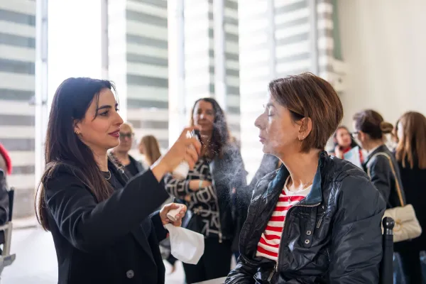 Dalle tre del pomeriggio le nostre Milleunadonna si sono concesse alle esperte mani delle truccatrici di Douglas per farsi fare un make up su misura. Poi tutte nell’Auditorium dove con la ginecologa Esther Proto, la neurologa Lorena Lorefice , la nutrizionista Nicoletta Granata, la psicosessuologa Anna Perillo si sono affrontati tanti temi per migliorare la salute e il benessere di ognuna di noi: cosa fare per perdere quei due o tre chili che dopo i 40 anni ti si incollano all’addome, quali strategie mettere in campo per contrastare il calo della libido, quali screening di prevenzione e a quali età in tema di tumori all’utero e alle ghiandole mammarie, e così via. Ma c’è stato anche tempo per rilassarsi e imparare a respirare meglio con una seguitissima lezione di yoga da ufficio di Devika Camedda e per sperimentare i vantaggi della riflessologia facciale con Valentina Atzeni, una sorta di automassaggio che si riflette in modo benefico anche sugli organi interni del nostro corpo.