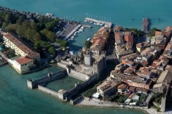 Sempre sul Lago di Garda, ma fronte lombardo, c’è da ammirare un altro castello Scaligero e cioè quello di Sirmione che domina il paesaggio ed è tra gli esempi meglio conservati di fortificazione lacustre. In origine possedeva tre ingressi, uno trovava luogo a meridione e sbarrava l’istmo che collegava la penisola alla terraferma, un altro a occidente rivolto in direzione del borgo, l’ultimo, sul lago. Mentre gli ingressi di terra si caratterizzavano per la presenza di ponte levatoio, l’ingresso dal lago era singolare, poiché protetto da una darsena artificiale potenziata da due torri angolari. La fortezza è ancora oggi circondata da un ampio fossato colmo d’acqua proveniente direttamente dal lago.