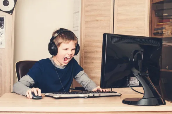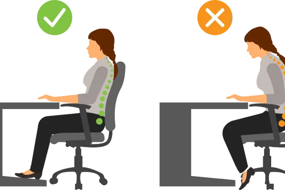 Un problema per la schiena dei più piccoli può anche derivare dalla cattiva postura davanti a un videoterminale, come quelli per i videogiochi. Importanti saranno allora l’appoggio della schiena e la distanza dei piedi dal suolo. “Quando si sta seduti al videoterminale” spiega un quaderno sulla salute e la sicurezza in casa dei bambini dell’allora Istituto per la Prevenzione e la Sicurezza del Lavoro “è importante che la schiena abbia un appoggio, in maniera tale da non stancare i muscoli del dorso. Quindi la schiena deve essere sempre ben poggiata allo schienale della sedia. Se la seduta della sedia è troppo profonda e non si riesce a poggiare la schiena, si può usare un cuscino o un giaccone ripiegato messo tra lo schienale della sedia e la schiena del bambino, in maniera tale da garantire un buon appoggio. I piedi debbono avere sempre un appoggio. Non fa bene ai muscoli delle gambe ed alla circolazione sanguigna tenere le gambe che penzolano dalla sedia senza che i piedi arrivino a toccare il pavimento. Quando si sta seduti, la pianta dei piedi dovrebbe sempre toccare completamente il pavimento e le ginocchia dovrebbero essere piegate con un angolo di 90°. Se questo non è possibile perché la sedia è troppo alta, si può mettere a terra sotto il tavolo un poggiapiedi, uno scatolone, un elenco del telefono o un altro supporto, in maniera tale da fornire una superficie di appoggio ai piedi. Sotto la scrivania non vi devono essere oggetti ingombranti, che limitano lo spazio per le gambe. Le gambe devono essere bene alloggiate sotto la scrivania e ci deve essere spazio sufficiente per poterle muovere, in quanto una posizione fissa per lunghi periodi stanca la muscolatura”.