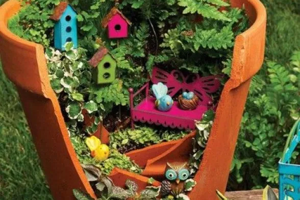 L’idea di base è recuperare in modo artistico il vaso in frantumi trasformandolo in contenitore per piantine grasse, piante aromatiche o fiori, aggiungendo elementi di decorazione come conchiglie, tappi di sughero, sassolini, pietre colorate e pezzettini di legno. I più esperti, invece, riescono anche a riprodurre sfondi fiabesci posizionando piccoli pupazzi.