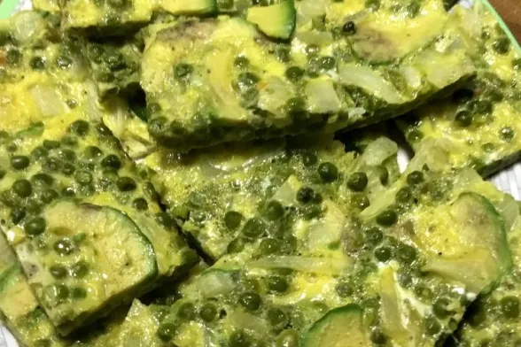 Lasciare raffreddare, mischiare assieme alle uova, mettere in una teglia con carta forno e un po’ di olio, tagliare a fette l' avocado e isporlo sopra la frittata, infornare a forno caldo 200 gradi per circa 10/12 minuti.