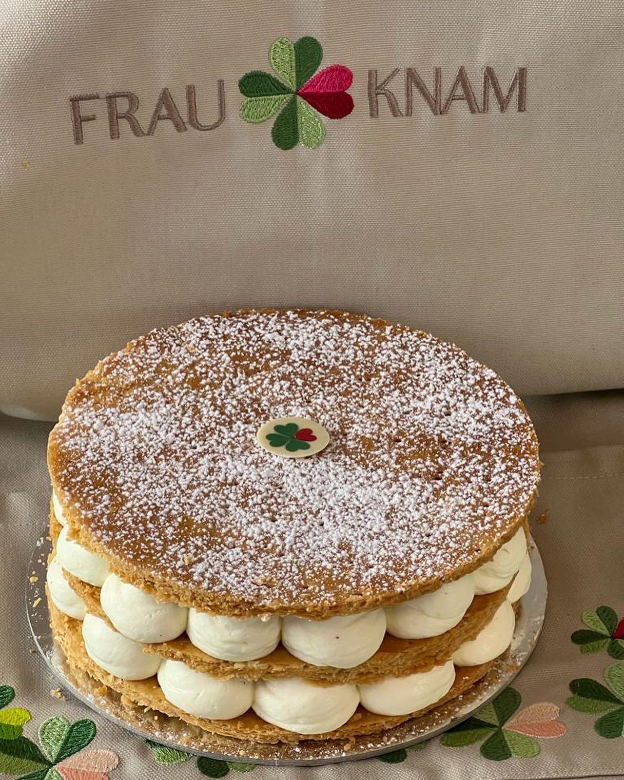 Terminate con l’ultimo disco di pasta sfoglia. Spolverizzate la superficie con zucchero a velo.
