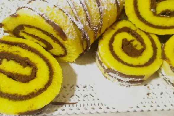 Sfornare il pan di Spagna, posizionarlo sopra la carta forno ancora tiepido e arrotolarlo insieme alla carta forno. Mettere in frigo per circa 1 ora, togliere dal frigorifero e srotolarlo delicatamente e spalmare la Nutella in superficie. Arrotolare nuovamente e avvolgere nella pellicola trasparente, mettere in frigorifero per 1 ora. Togliere dal frigorifero e cospargere la superficie con la Nutella e lo zucchero a velo.