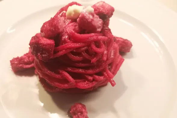 Ricetta saporita e che ricorda i profumi e i gusti della terra e del mangiar genuino, grazie alla Rapa Rossa. Allo stesso modo ha quel non so che di classe grazie alle gocce di Gorgonzola e il gusto inebriante del mare che ritroviamo nei tocchetti di Pesce Spada, che ben si contrappone al gusto piccantino dello zola.