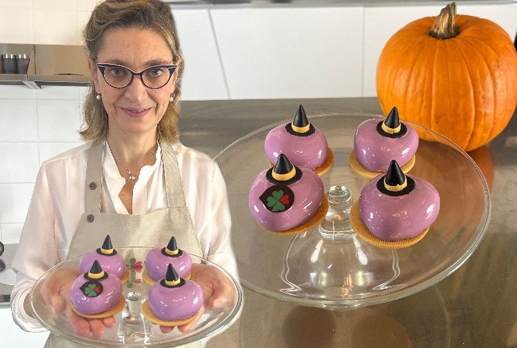 Con una sac à poche riempite circa per metà degli stampi in silicone per monoporzioni. Aggiungete l’inserto di gelée congelato e proseguite con un altro strato di mousse. Terminate con un disco di roulade.