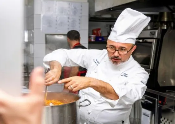 Un giorno ricevetti un invito dall'Ambasciatore italiano in Montenegro per andare a cucinare in occasione dell'evento: 'settimana della cucina italiana nel mondo' in programma dal 17 al 22 novembre. Organizzai subito un menu per poter ottemperare a tutte le richieste pervenute. Dovevo cucinare in due ristoranti diversi ma non sapevo cosa avrei trovato nelle cucine. Dopo aver deciso i menu e le liste della spesa non restava che trovare il biglietto e partire. Mi imbarcai di domenica per Podgorica, la Capitale del Montenegro, dove mi attendeva la Dott.ssa Albano, dell' Ambasciata Italiana che mi avrebbe fatto da guida per tutta la mia permanenza. Dopo una veloce puntata in albergo, andai subito a vedere la cucina del ristorante Forest. Una piccola cucina ma con persone all'interno con il cuore grande. Dopo aver testato i principali piatti montenegrini e dopo aver fatto un giro veloce nel centro, ci preparammo per la giornata inaugurale che prevedeva la cena per tutti gli Ambasciatori dei vari Paesi presenti nella Capitale montenegrina. Per l'occasione preparai questo menù: sfilacci dell'aia alla Bartolomeo stefani, penne all'amatriciana, agnello alla cacciatora, gelo di limone.
